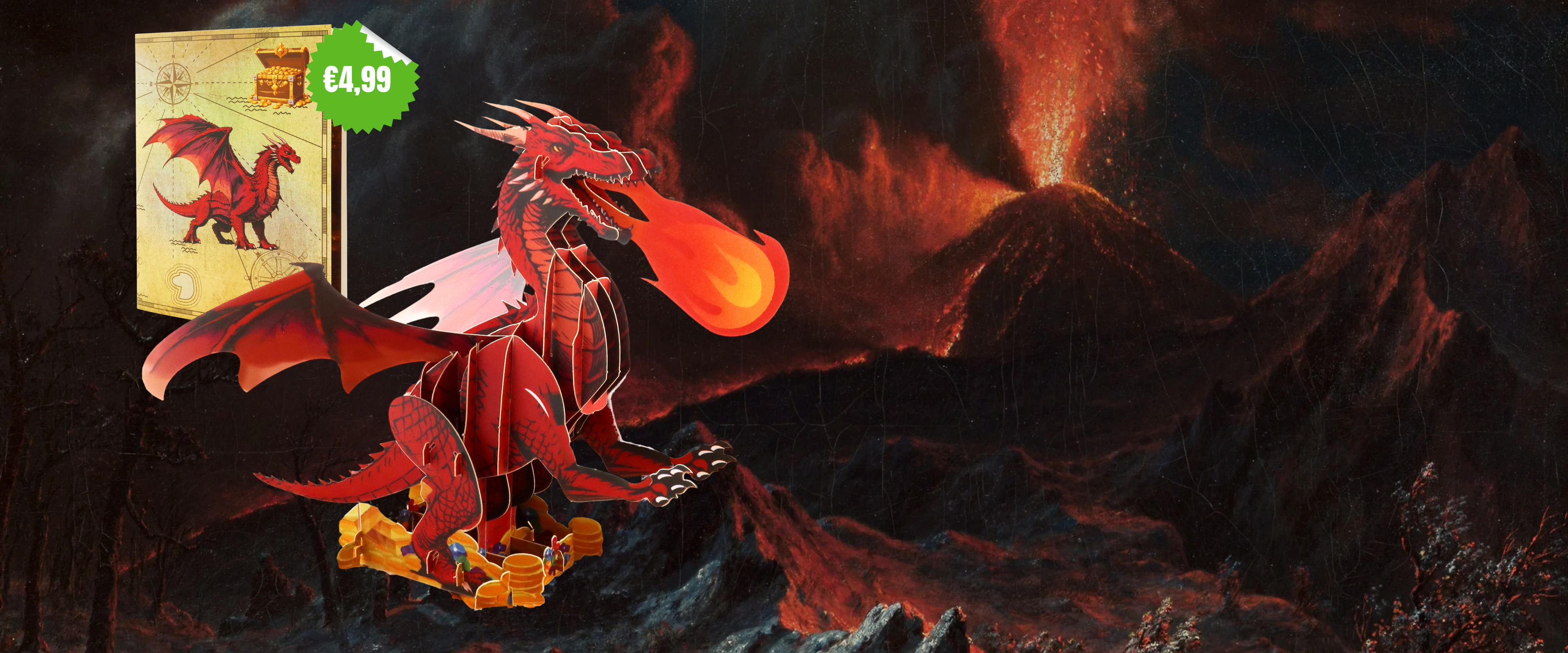 3D Pop-Up Karte Drache mit Schatztruhe