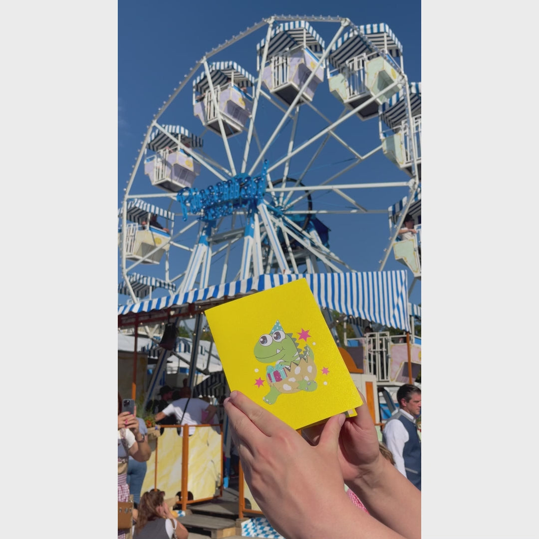 - ÜBERRASCHUNG – Fröhliche 3D Pop-Up Karte mit süßem Dino, bunten Ballons und „Happy Birthday“-Szene. Die Papierfigur springt beim Öffnen lebendig hervor und sorgt für ein großes Lächeln.